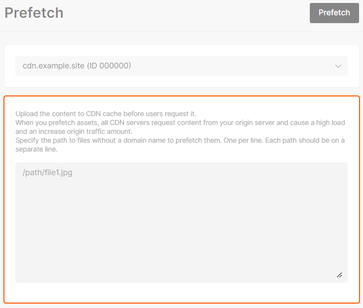 - If you need to update files stored in the CDN, first purge these files and then prefetch.