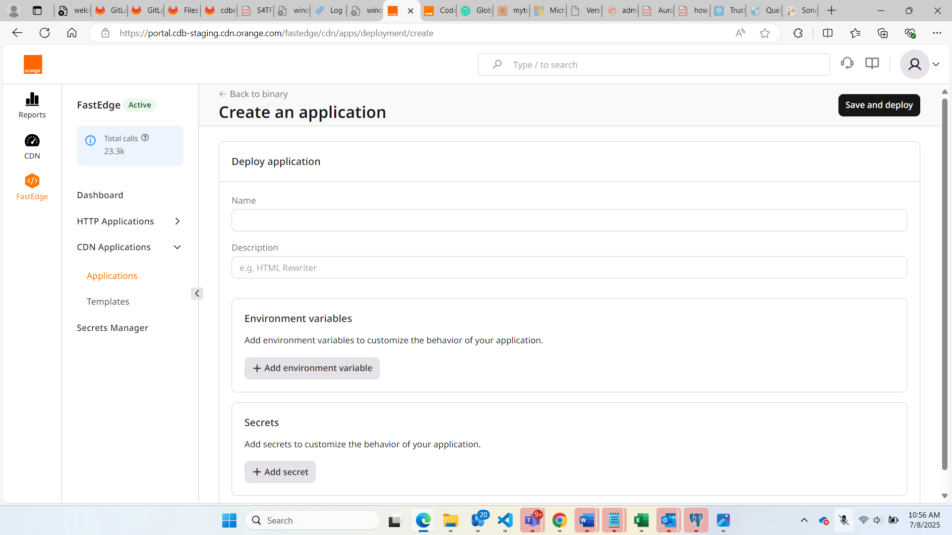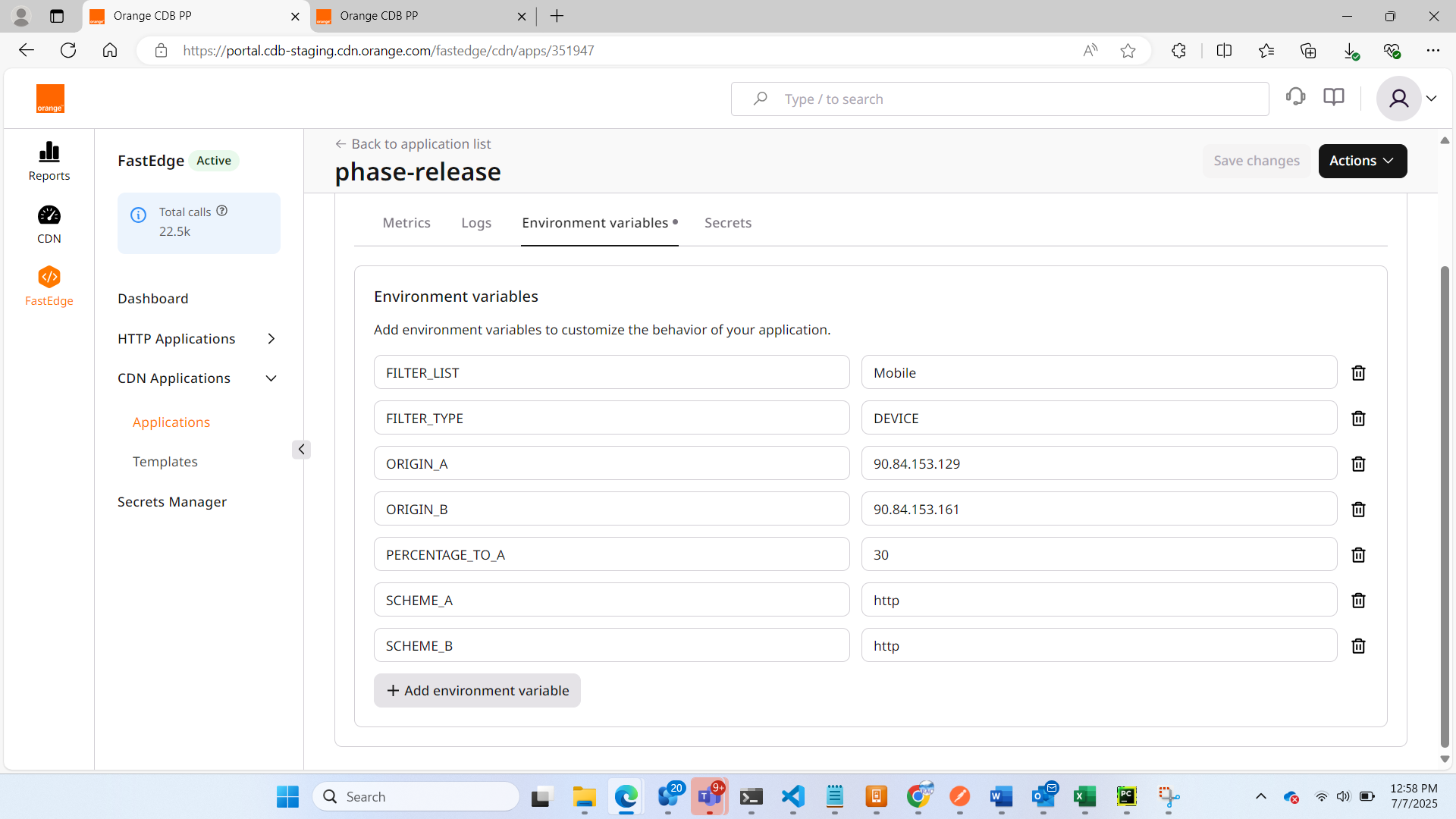 1. Create an application FastEdge: release manager (seee picture below). a. Upload your binary (see picture below) b. Enter your application name and create your env variables (see picture below)