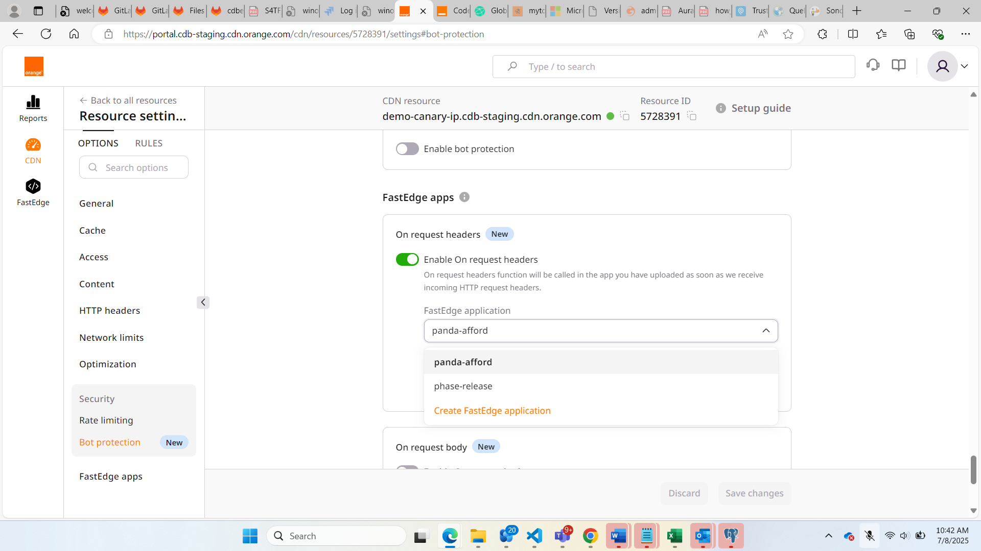 4. Link your CDN resource to your FastEdge application. (seee picture below).